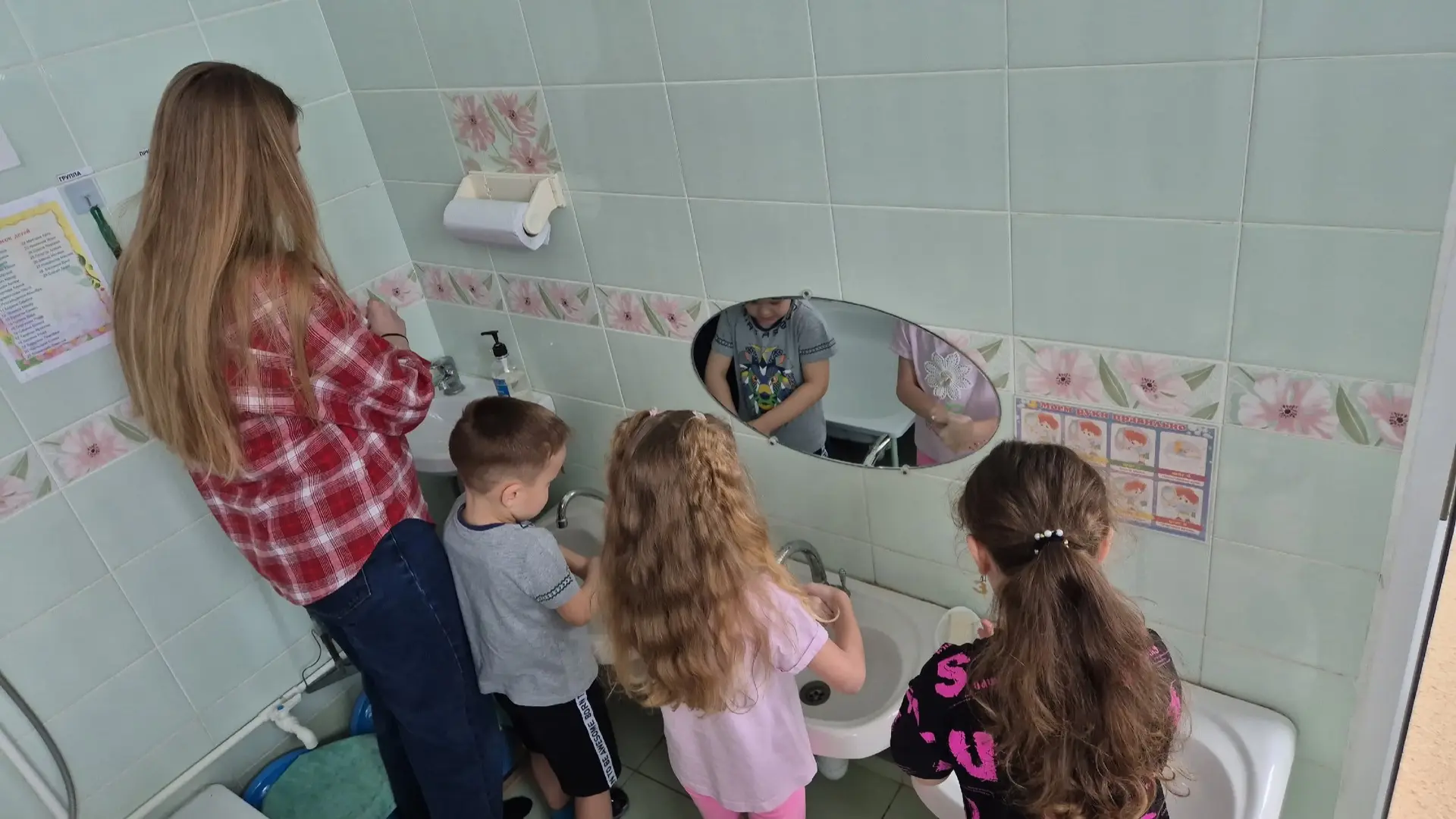 Дошкольники с интересом посмотрели мультфильм о правильном мытье рук и закрепили полученные знания на практике.