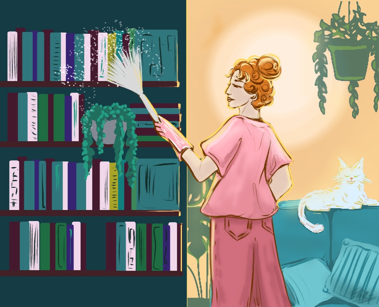 Правильно убирать пыль сверху вниз: верх шкафов, стены, полки, тумбочки, предметы интерьера, которые стоят на полу.